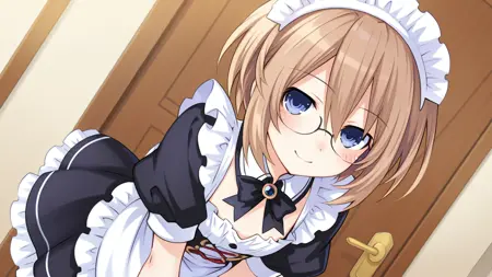 blanc (neptunia), blue eyes, blush, flat chest, brown hair, short hair, tsunako,