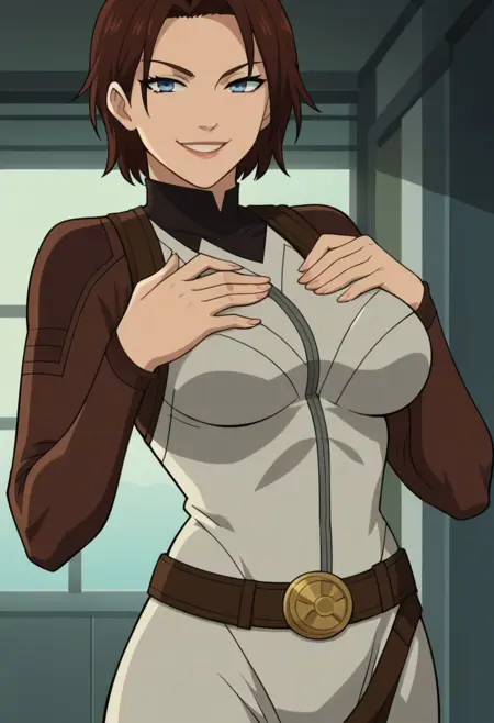 Default: meetra surik, short hair, brown hair, blue eyes, large breasts,