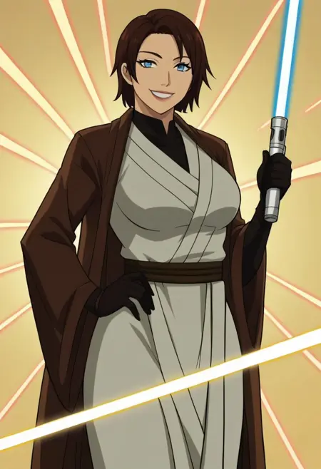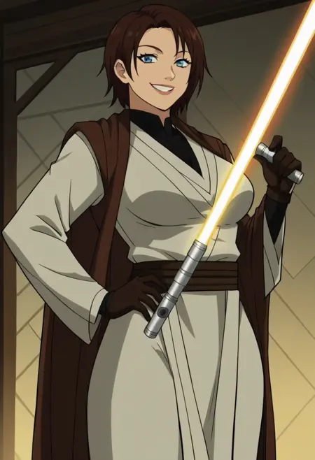 Outfit1: jedi robe, gloves, boots, lightsaber,