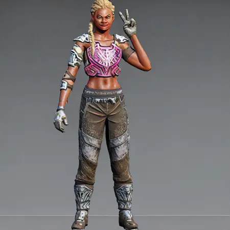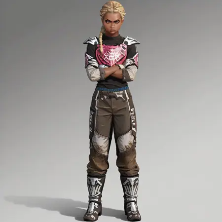 1人の少女、シングル、金色の髪、長い髪、編み込み、鎧、手袋、へそ、ズボン、ブーツ、濃い肌