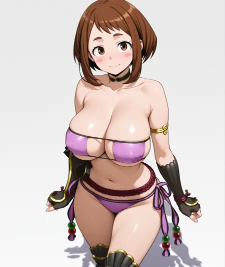 胸、太ももハイズ、へそ、バストライン、裸の肩、鎖骨、太もも、