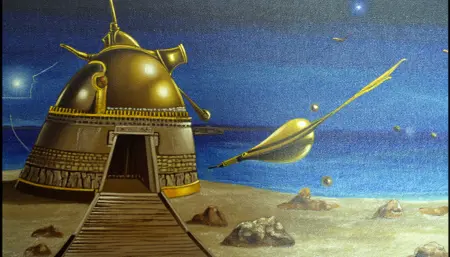 이 모델은 도빌리오 브레로의 '불가능한 여행' 시리즈 회화에 기반하여 훈련되었습니다. 이탈리아 다마누르의 마법사/알케미스트들, 오베르토 아우디에(마법사들 사이에서는 '팔코 타라사코 크리스탈로 디 라바'로 알려짐)가 창설한 비밀스러운 학파는 이것이 잃어버린 도시로의 실제 여정이었다고 말합니다. 무엇을 믿든, 그의 경험은 아름답고 매혹적인 작품을 만들어냈습니다.