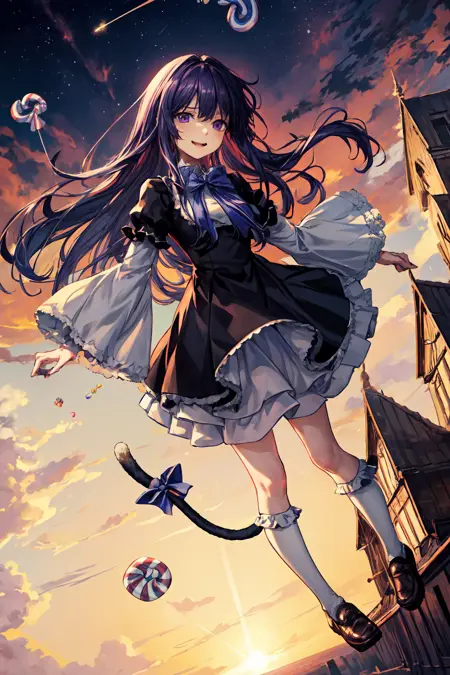 Minor prompt words: purple eyes*, tail ornament*