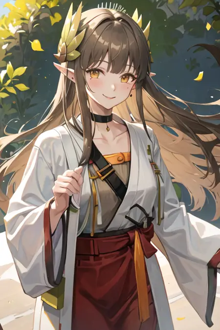 触发词为 muelsyse_arknights,精简标签为 long_hair, pointy_ears, mole, mole_under_eye, yellow_eyes, very_long_hair, brown_hair, laurel_crown。当某些特征(例如发色)有时不够稳定时,您可以将这些标签添加到您的提示词中。