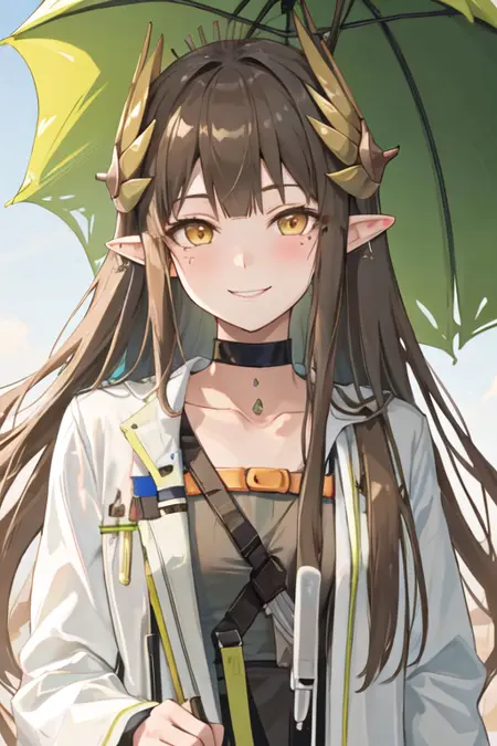 触发词为 muelsyse_arknights,精简标签为 long_hair, pointy_ears, mole, mole_under_eye, yellow_eyes, very_long_hair, brown_hair, laurel_crown。当某些特征(例如发色)有时不够稳定时,您可以将这些标签添加到您的提示词中。