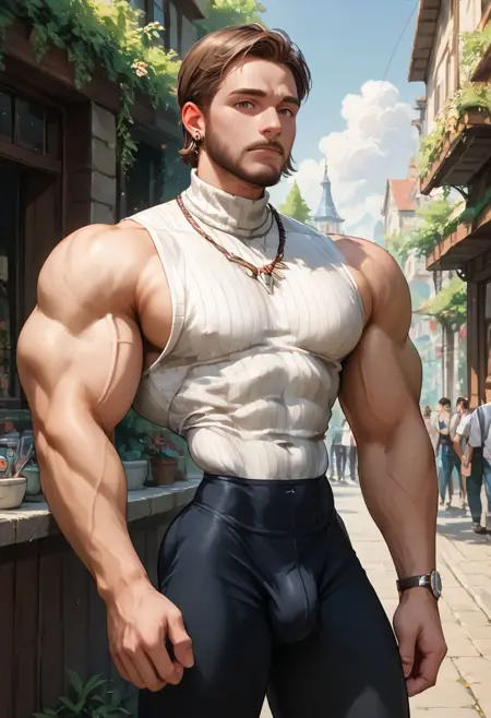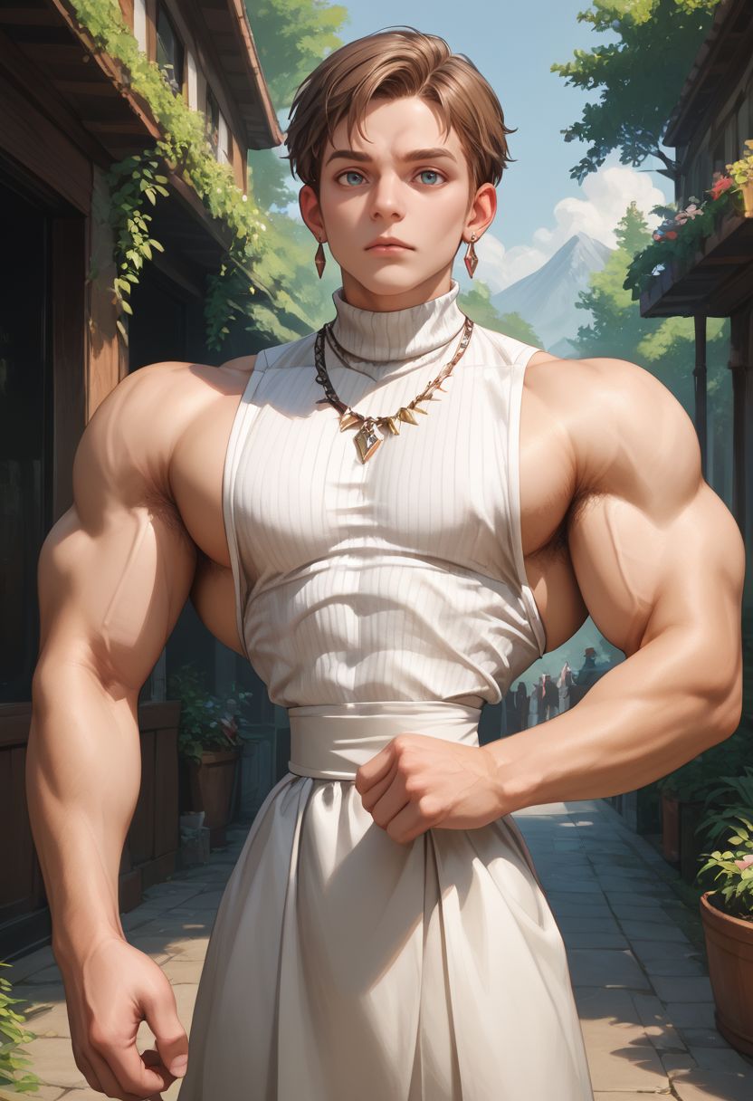 该模型用于创建腰部非常纤细的男性。在提示中添加“micro waist”标签。要使腰部更细,可以增加标签权重,权重最高可达1.5时效果良好。