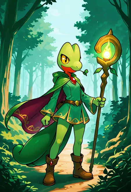 Treecko: Wood Gecko Pokemon | キモリ (Pokedex #0252) [Illustrious & SD1.5]
