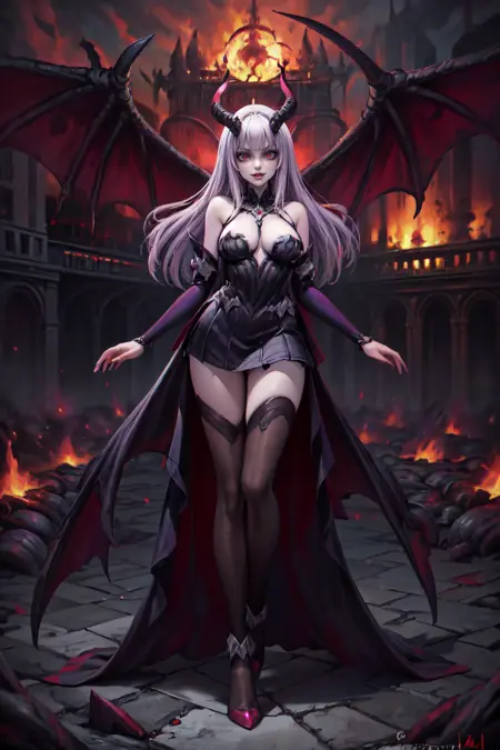 追加プロンプト(必要に応じて):悪魔の翼、角、長い髪または短い髪