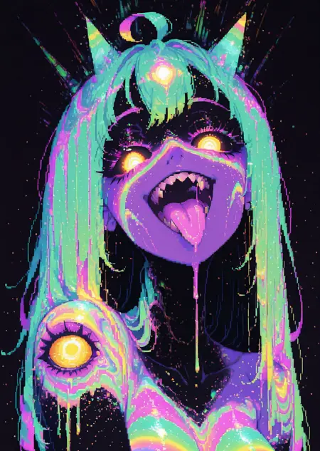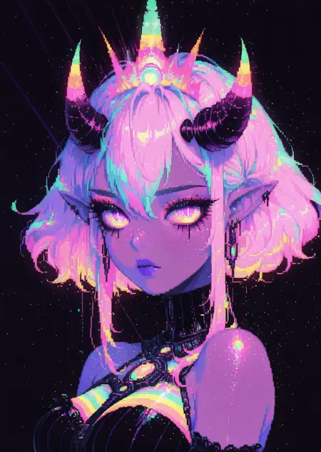 pastel pixel art, soft neon glow, dreamy aesthetic, iridescent highlights, vaporwave fantasy, ethereal colors, retro pixel style, gentle pixel shading, luminous reflections