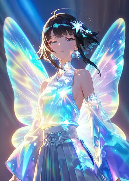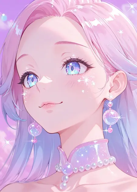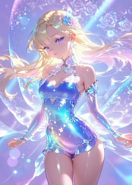 虹色の美的感覚、エーテリアルな輝き、夢のようなファンタジー、ホログラフィックなきらめき、天体的な光輝、パステルのオパール色、柔らかな発光調、半透明な光、真珠のような反射、不思議なエレガンス、きらめく霧、コスミックパステル、フェアリーコアファンタジー、天使的な柔らかさ、輝く魔力