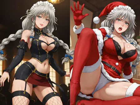 0utft21、サンタ帽、赤い手袋、サンタコスチューム、スパッツ、白いパンツ、胸元、ファーの縁取り、黒いブラ