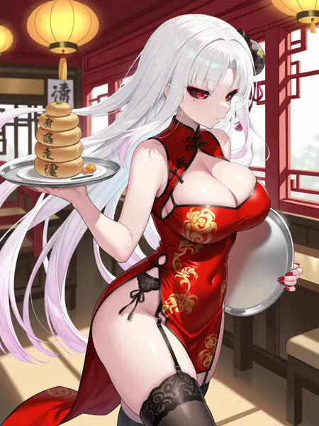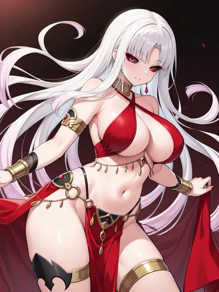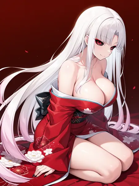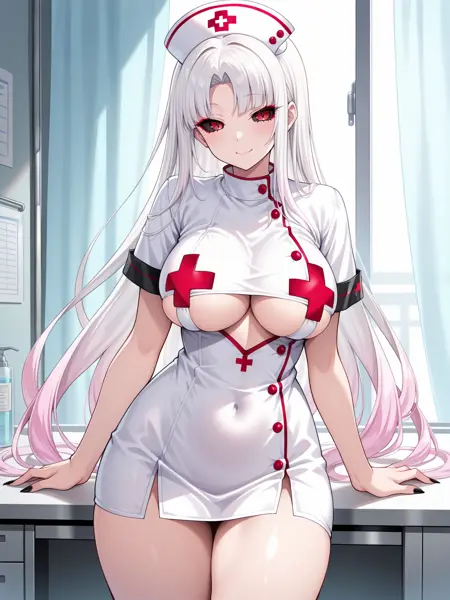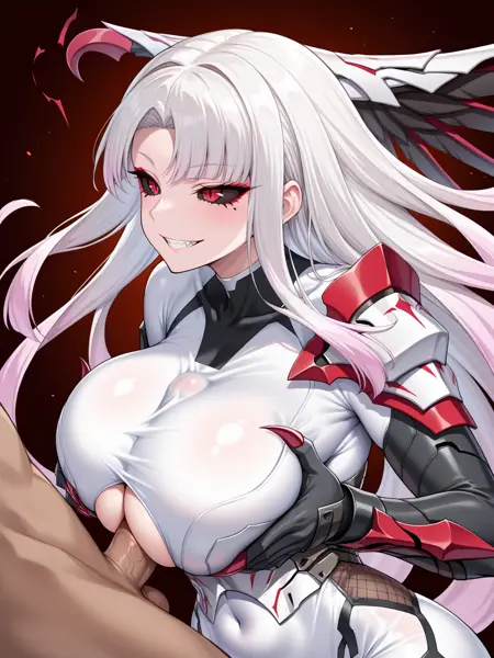 外观:ilazusa,白发,长发,渐变发色,红眼,黑色巩膜,妆容,大胸