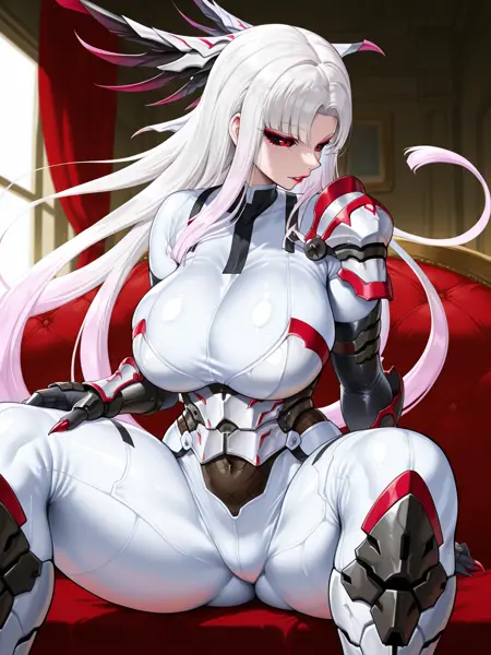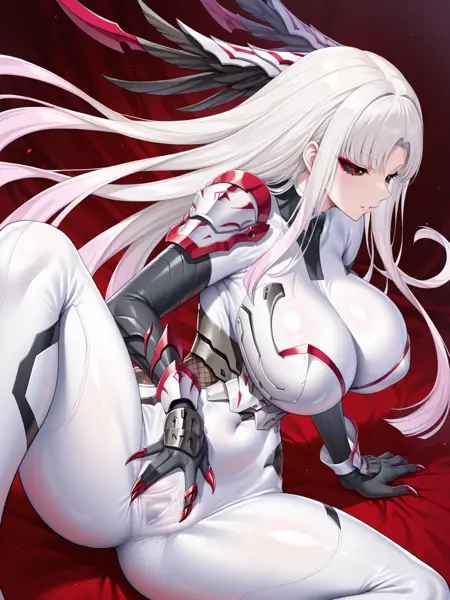 服装(仅紧身衣):装甲发翼、白色紧身衣、贴身、遮住肚脐、装甲束腰、肩甲、肘部手套、黑色手套、护手、锋利爪子、侧边开叉、渔网袜