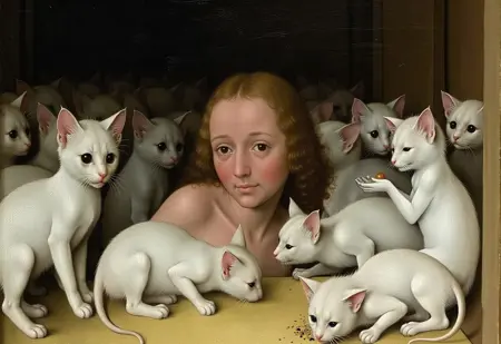 kvk style, , The image depicts a surreal and chaotic scene from a painting by Hieronymus Bosch. It shows a ...