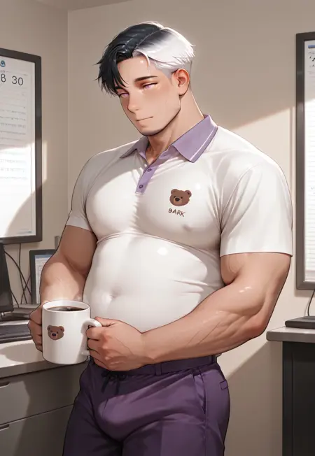 额外视觉(如未展现真实身体特征):腹部,小腹,面部皱纹,成熟男性,年长男性