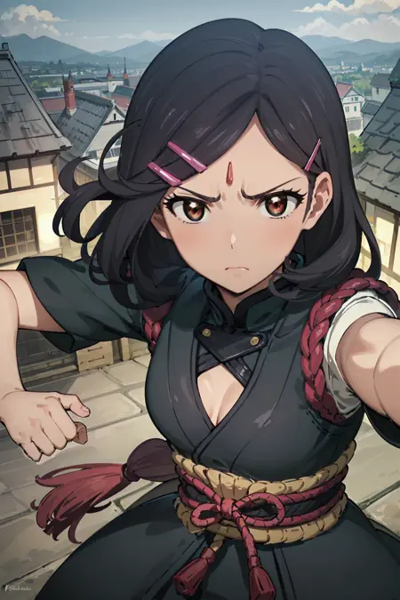 trigger & required prompt: dolma, hairclip, forehead jewel,