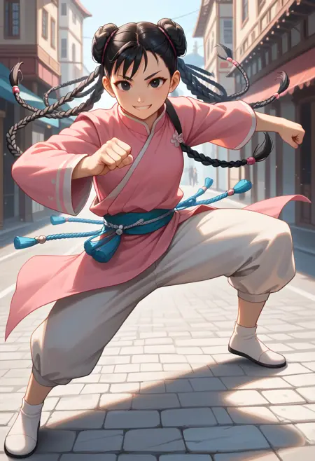 1girl, may chang, 머리 땋기, 더블 땋기, 트윈 땋기, 검은 머리, 긴 머리, 검은 눈
