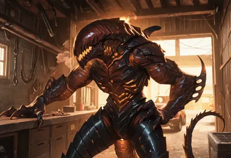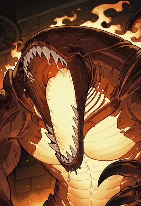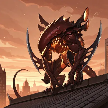 タグ:ファイクセリア、甲殻肌、目なし、モンスター、歯 [または鋭い歯]、爪、尾、ブレードアーム [これは大多数の画像に適用されるため、このまま維持してください]、半野生(オプション)、口を開けた状態(オプション)