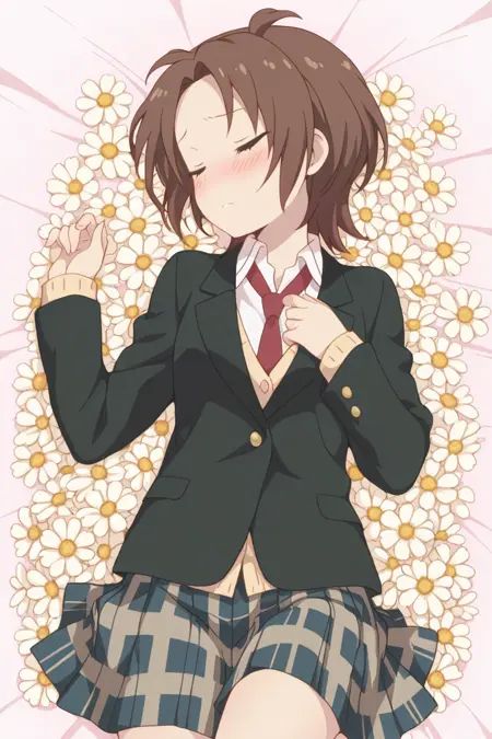 yuzu, brown hair, brown eyes, 1girl, school uniform, necktie, blazer/sweater