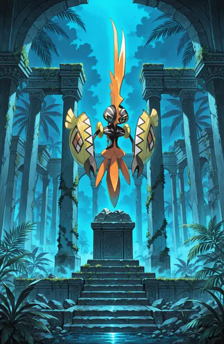 The dataset was trained with the tag "shell mask" for the things tapu koko carries in his arms, but, Illustrious didn't really like that, so, prompting "shell mask shield" gives better results most of the time.