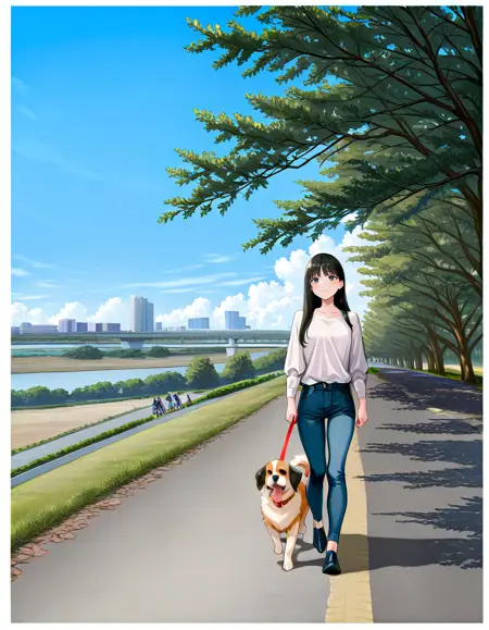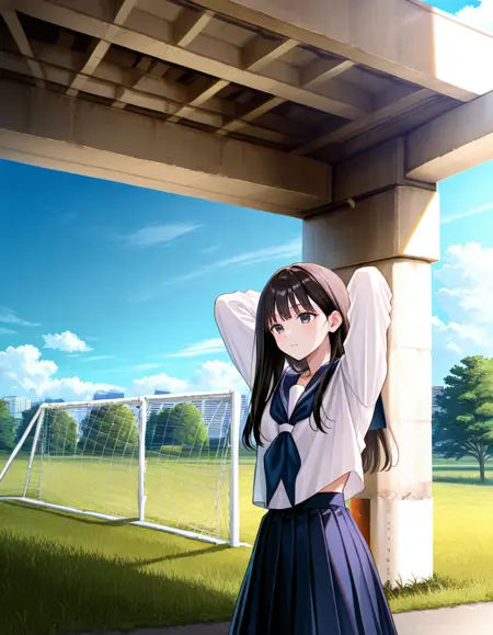 일본의 제방 주변 풍경과 강변, 고가도로 아래, 강변에 있는 운동장을 재현하기 위한 LoRA입니다.