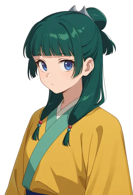 - 1girl,green hair,blunt bangs,blue eyes,