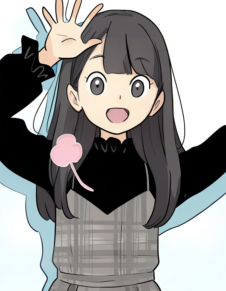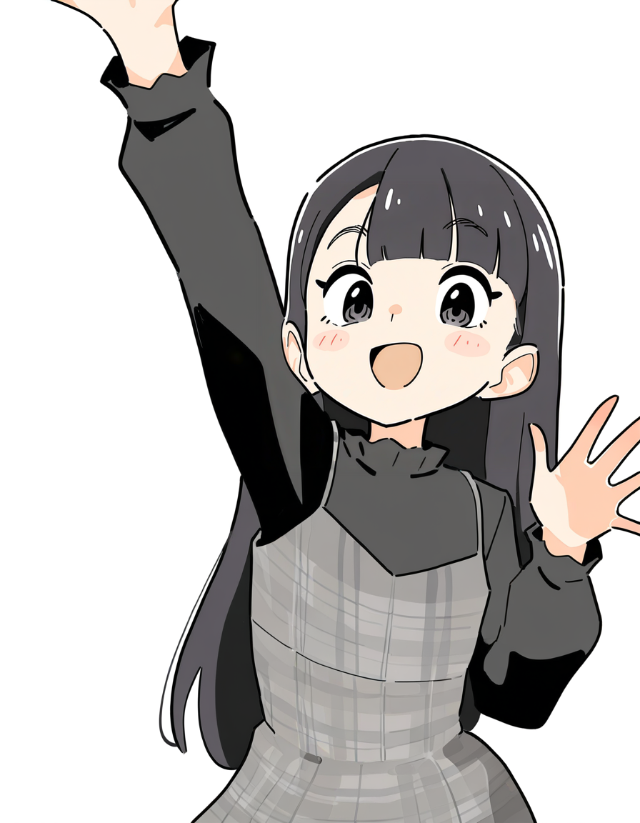 skin3,lijing,1girl,solo,long hair,black hair,bangs,black eyes,dress,plaid dress,black dress,