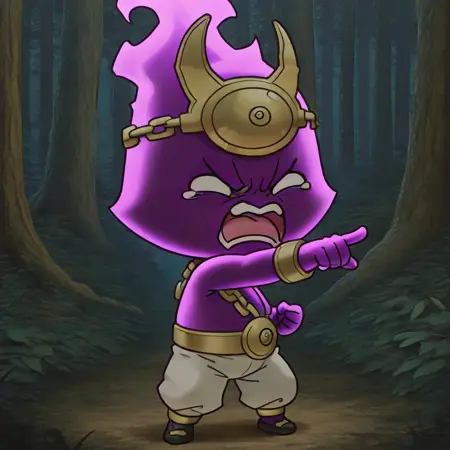 male, male focus, humanoid, solo, purple body, white eyes, no pupils, flame head, short