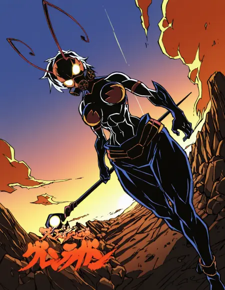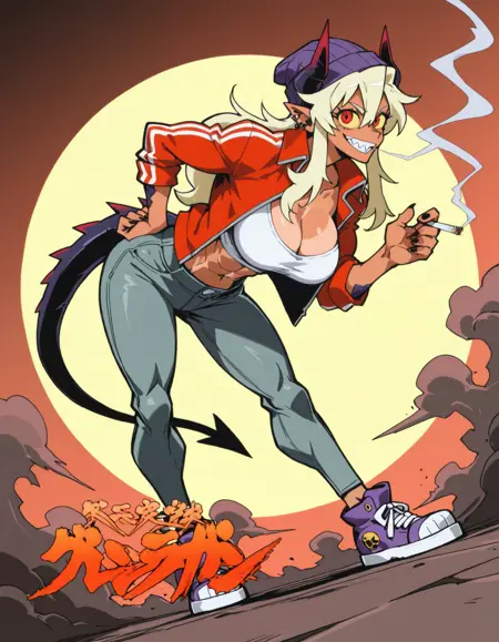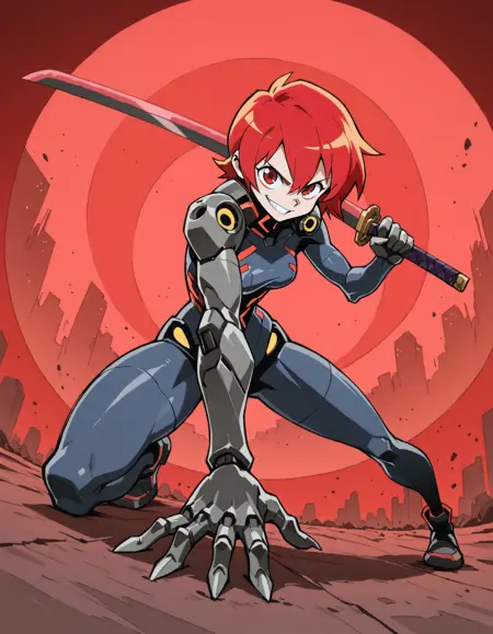 추가 사용: 역동적인 각도, 두꺼운 윤곽선, 원근샷, 역동적인 자세, 극적인 그림자,