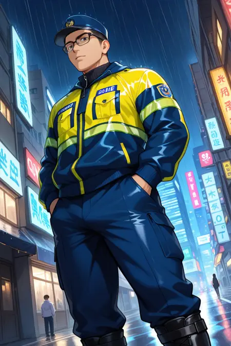 HannekenTWpolice06, High-visibility clothing, Hi Vis jacket, untucked jacket, High Visibility Jacket, black pants, black boots
