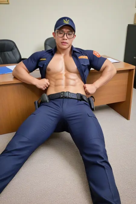 HannekenTWpolice01, black police shirt, black collared shirt, black pants, black boots,
