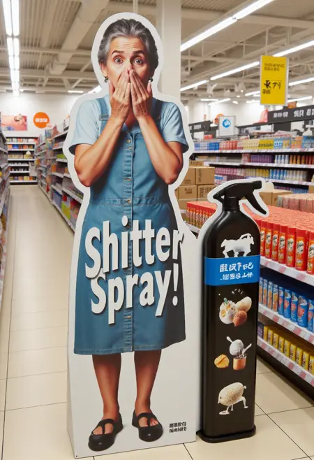Meticulously fine-tuned on thousands of like 30 dead-eyed mascots and C-list celebrities frozen mid-enthusiasm, this LoRA generates promotional standees so realistic, you'll instinctively try to avoid eye contact while scrolling. Perfectly captures that special combination of oversaturated printing, unstable cardboard feet, and the subtle "I'm being held against my will to sell you yogurt" expression that defines the genre.*