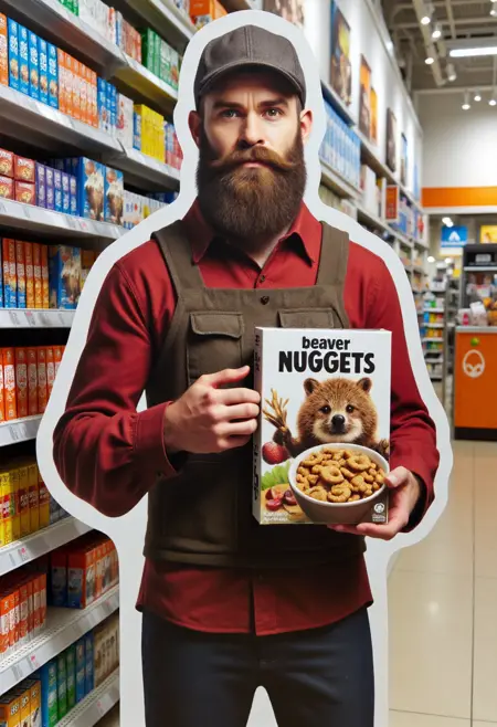 The world's first 12th AI modeI trained exclusively on grocery store promotional standees! While others taught their models fine art, I taught mine the art of the awkward cardboard celebrity pointing at discounted crackers.