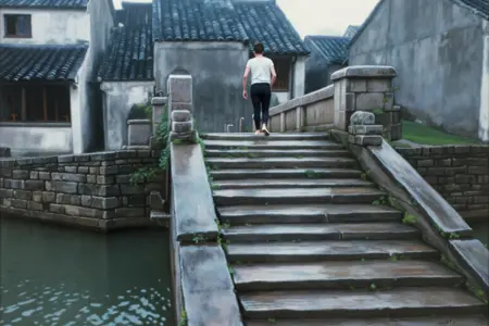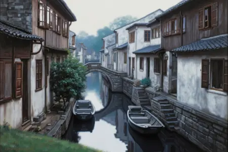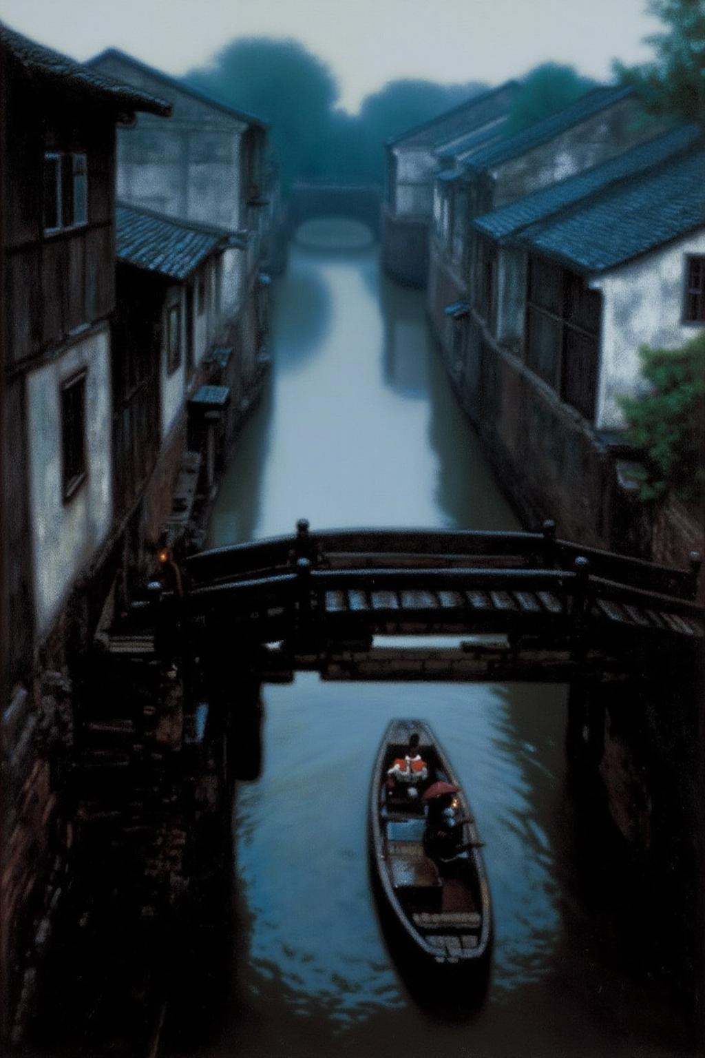 《水巷旧梦》:其著名水巷系列之一,生动捕捉了苏州水道朦胧而怀旧的迷人魅力。