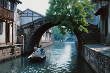 Canal Reveries: Chinese and Venetian Canal Landscape Oil Painting Style (Chen Yifei)