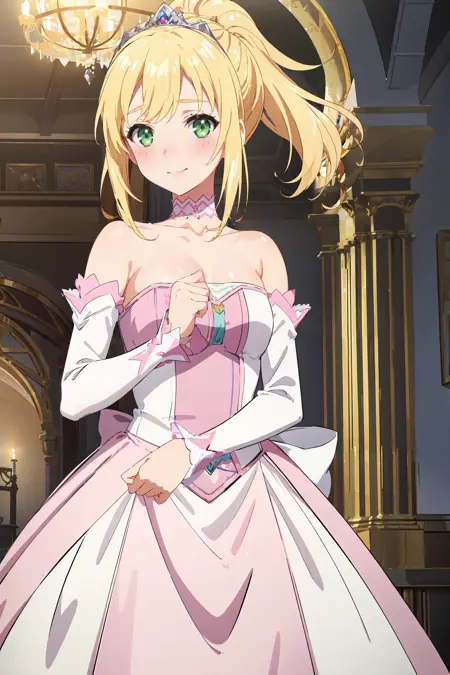 服装:王冠,项圈,露肩,分离袖,粉色连衣裙