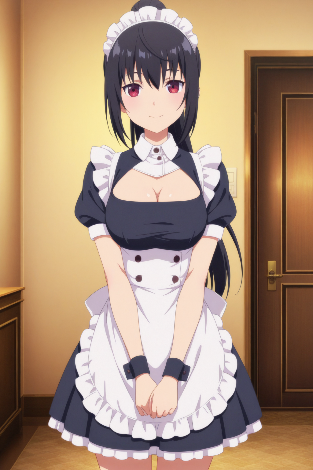 aashizuku, red eyes, black hair, ponytail, anime coloring,