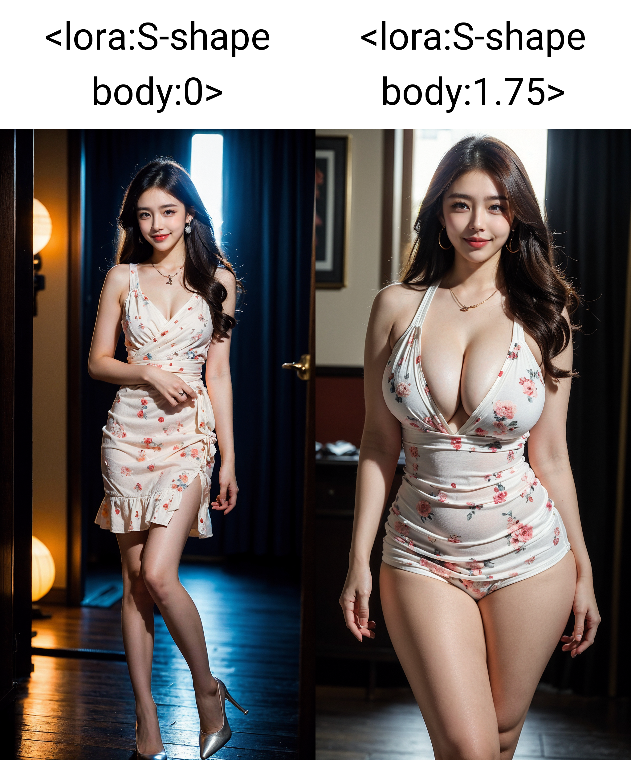 이름 그대로, 바디 조정기는 S자 곡선을 강하게 만들어냅니다. 원하는 신체 비율을 직접 가중치로 조정하시면 됩니다. “여자가 되는 게 참 아름답지”, “좋은 체형은 과감히 뽐내자”고 생각합니다.