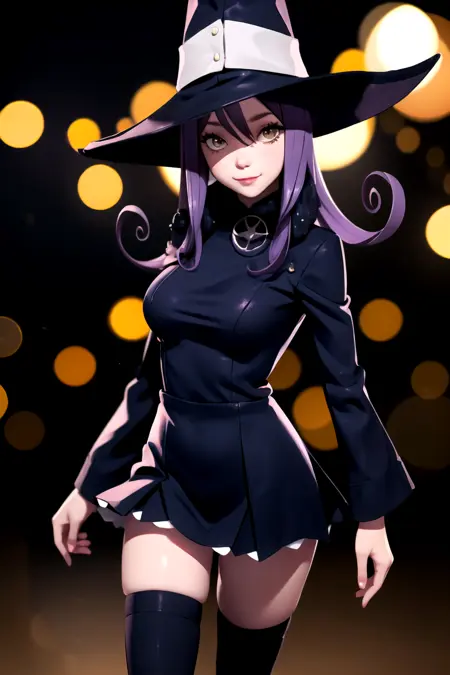 权重:0.8触发词:Blair_Soul_Eater <-- 与LoRA文件名相同,是不是很容易记住?额外提示词:女巫帽,短裙,过膝袜使用27张图像进行训练