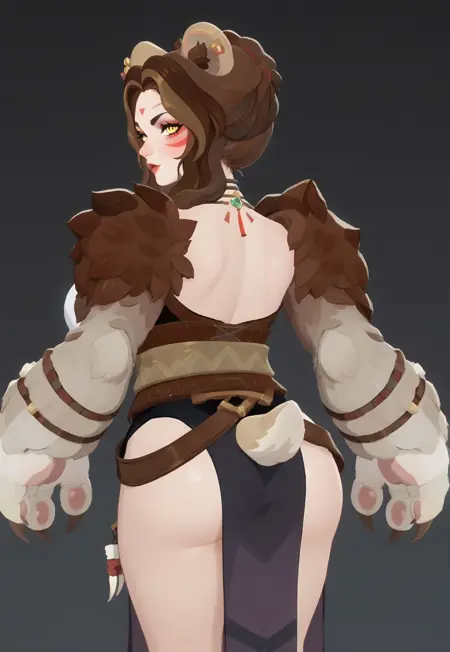 Negative Prompts: necklace, armor, tooth necklace, animal hands, claws, belt, pelvic curtain