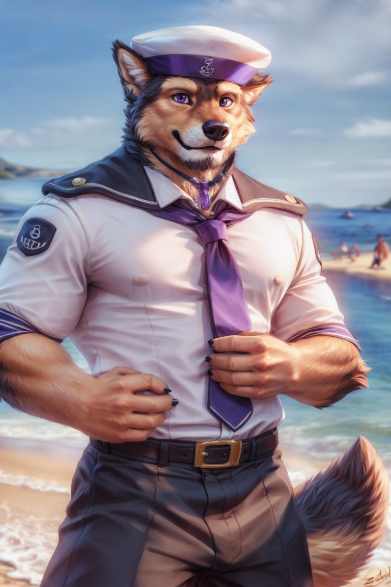 来自《Live a Hero》的水手角色,训练于Fluffyrock Lion e27非偏移模型。与帽子和水晶项链搭配效果不错,但有时水手服可能会有些问题^^
