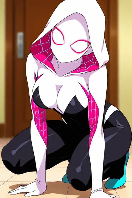 1girl, solo, hdSpiderGwen, 帽子, 面具, 帽子拉起,