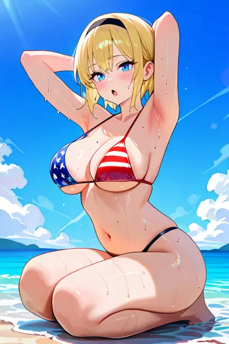 1girl, solo, hdSpiderGwen, short hair, blonde hair, hairband, blue eyes,