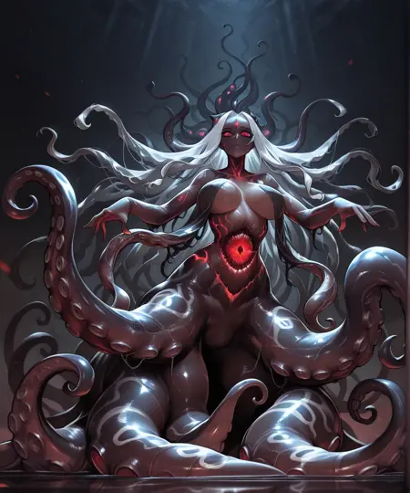 アボミネーションの形態には以下を試してみてください:"タコ型モンスター、非常に長い髪、裸体、モンスターガール、触手、異次元的アボミネーション、スキュラ"