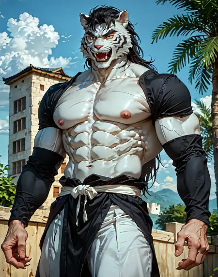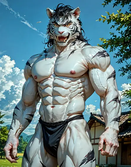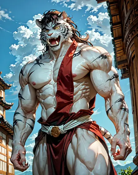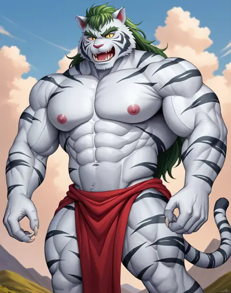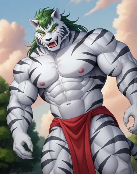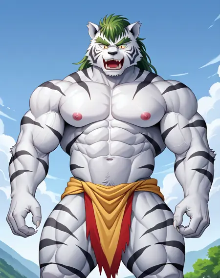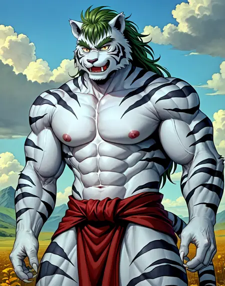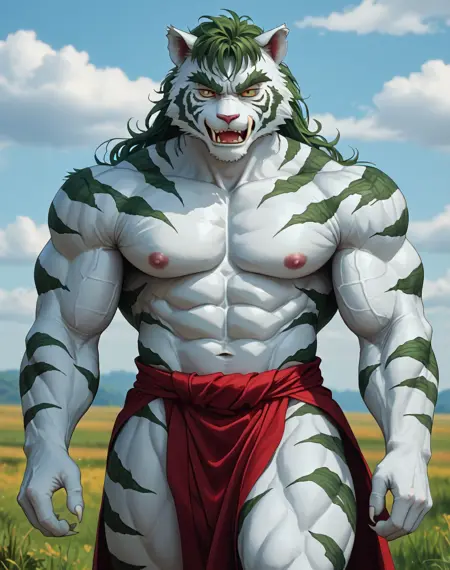 이 LoRA용 프롬프트는 (Byakko, Yu Yu Hakusho, tiger, muscular, )입니다. 때로는 이미지를 더 잘 나타내기 위해 (white body, green stripes, green hair, )와 같은 프롬프트를 추가해야 합니다.