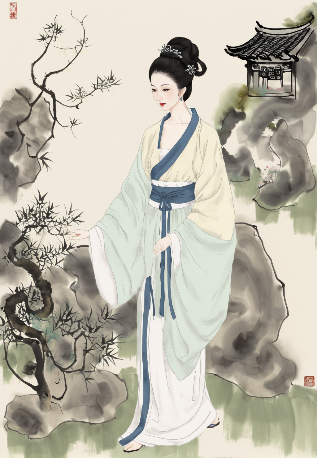기타 참고 프롬프트: chinese ink painting, chinese style 등;