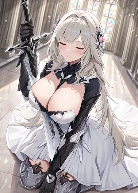 ->bianca_solitarydreams, 긴 머리, 머리 장식, 파란 눈, 장갑, 큰 가슴, 드레스