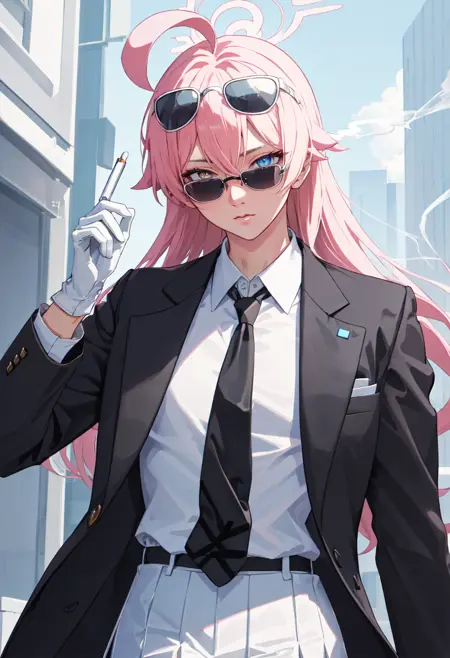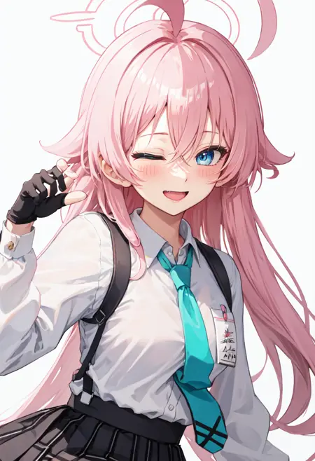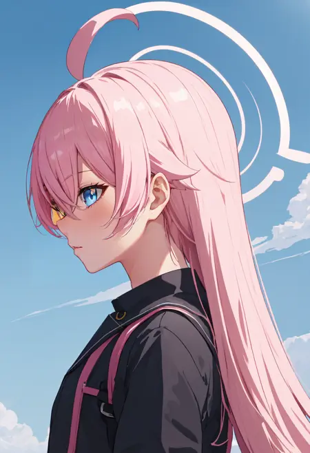 触发词为 hoshino_bluearchive,精简标签为 pink_hair, ahoge, halo, long_hair, hair_between_eyes, blue_eyes, yellow_eyes, pink_halo, heterochromia, very_long_hair, fang。当某些特征(如发色)有时不够稳定时,您可以将这些标签添加到提示词中。
