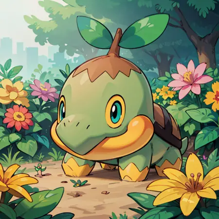 트리거: Turtwig_Pokemon <-- Lora 파일 이름과 동일하며, 기억하기 간단하죠?19장의 이미지로 학습됨