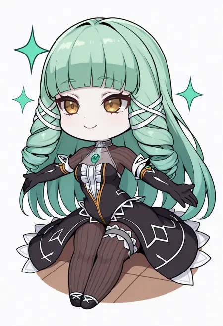 Emeraude,黄眼睛,绿发,长发,钻头式鬓角,白色发带